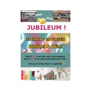 Vanwege ons 26-jarig jubileum vanaf 18 maart jl. hebben we weer een originele actie bij het afrekenen.